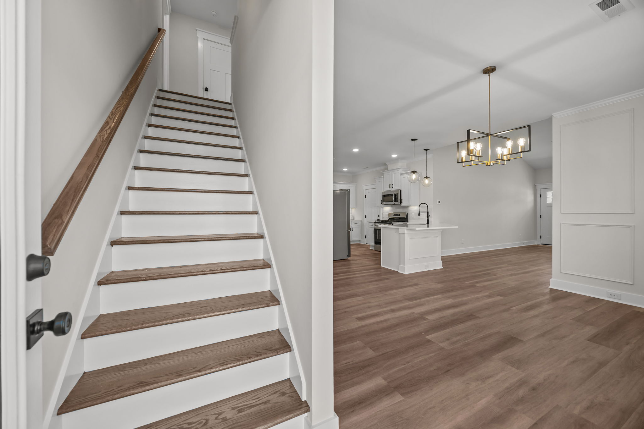 Welcome to Kadie Farms - Greenville's newest upscale duplex community! This gorgeously crafted Andrew Plan duplex offers 3 bedrooms, 2.5 bathrooms, and 1,714 sq. ft. of thoughtfully designed living space with the primary bedroom conveniently located on the first floor. Step inside and you're welcomed by a bright, open-concept living area featuring a stunning gas fireplace, a beautifully trimmed dining area with elegant lighting, and a showcase kitchen. The kitchen is equipped with upgraded Frigidaire appliances—including a gas range and refrigerator—plus granite countertops, tile backsplash, bar-top seating, and a spacious walk-in pantry. The first-floor primary suite provides a peaceful retreat with a soaker tub, double vanities, a tiled walk-in shower, and a large walk-in closet. Upstairs, you'll find two additional bedrooms, a full bathroom, and convenient walk-in attic storage. Additional highlights include a 1-car garage with an electric car charging outlet, tankless hot water heater, patio area, and stylish finishes throughout—even the powder room is a showstopper! This unit is MOVE-IN READY and opportunities in Kadie Farms won't last long. Don't miss your chance to make this incredible home yours!